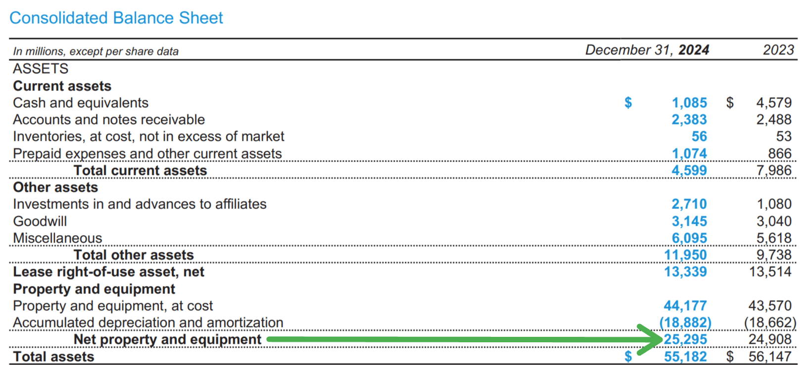 McDonald's balance sheet shows their property at $25.3 billion (page 42 of the 2024 annual report).
